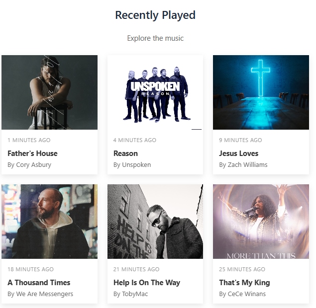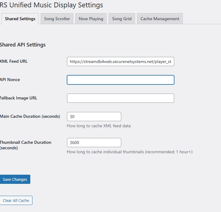 The Unified Music System is exclusive to our web design clients for now. This plugin suite allows you to display your latest song feed in 3 different formats- a single Now Playing display, a recent songs horizontal scroller and a recent songs grid that allows you to show as many recent songs as you like in as many rows/columns as you choose. You can combine shortcodes, such as showing the Now Playing song, and under it a button link to the page of recent songs grid, or show the scroller. The scroller can be offset by one song so you can show the latest song and below it the ones before that if you wish. Extremely flexible!
