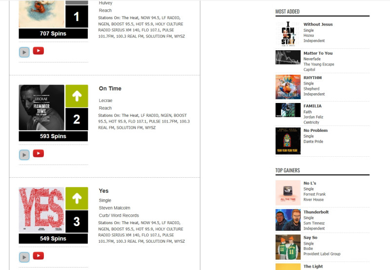 The Hot Chart is a volunteer collaboration between Boost FM St. Louis, KXOJ Tulsa and Radioservers. The site fills a need for tracking iarplay among hip-hop, pop and rhythmic ccm stations across the country.